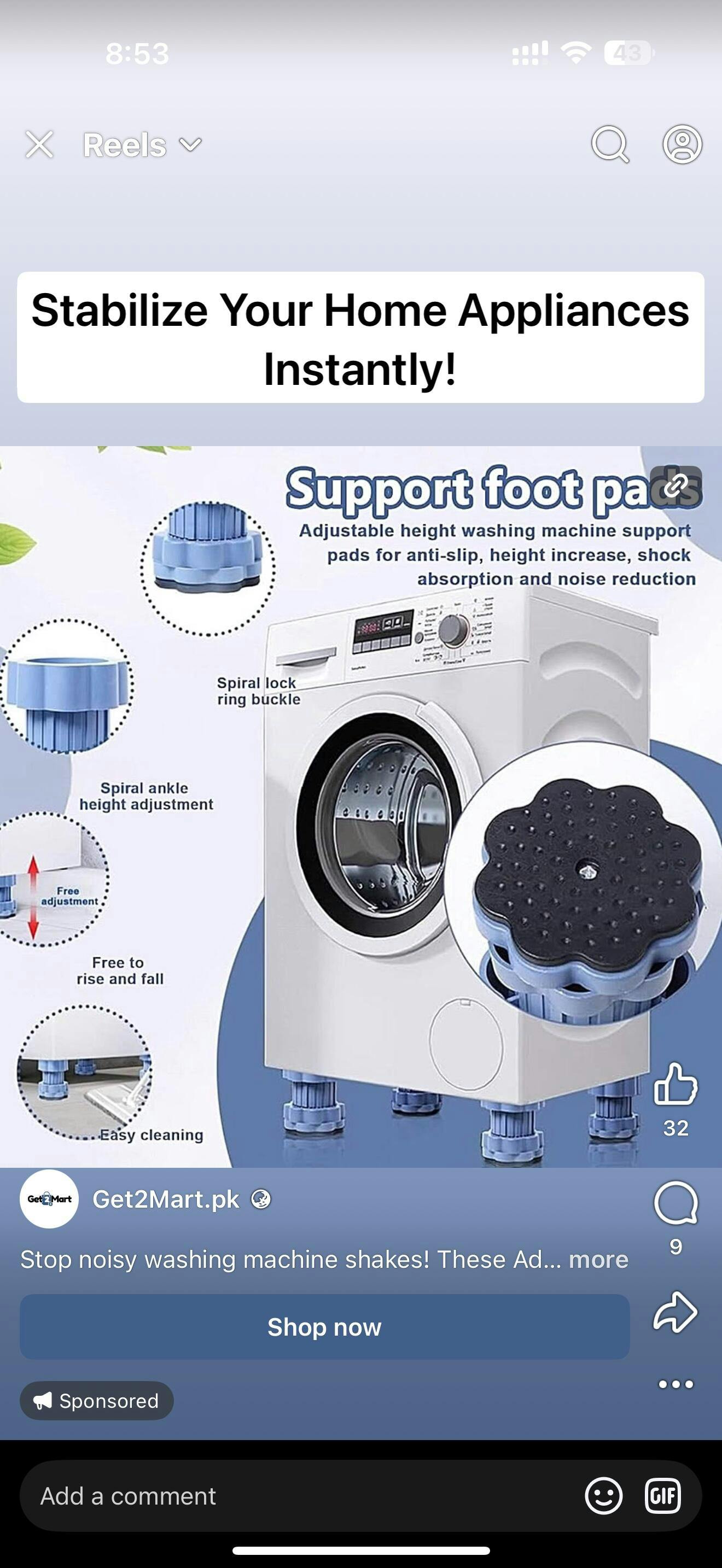 Anti-Vibration Adjustable Pads – Keep Your Washing Machine & Fridge Stable, Quiet, and Safe